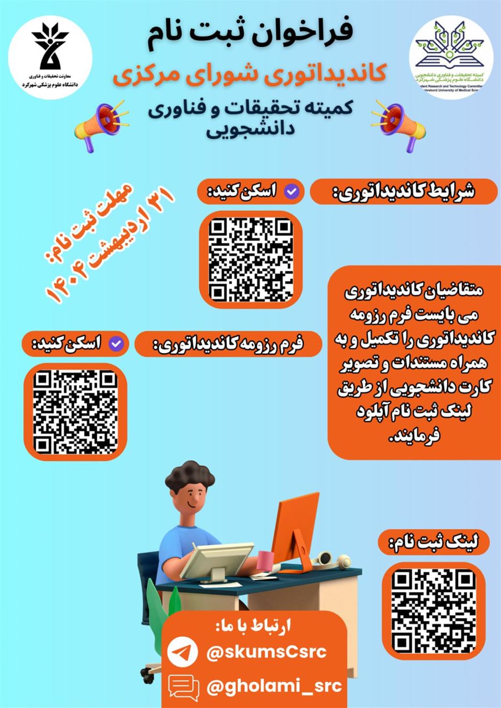فراخوان کاندیداتوری شورای مرکزی کمیته تحقیقات و فناوری دانشجویی دانشگاه علوم پزشکی شهرکرد سال 1405-1404